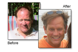 I am still amazed when I look in the mirror today. I can’t believe that 1 painless day a few years ago has given me back so much hair. Being almost 50 yrs old, I can not imagine how I would feel today, looking in that mirror, had I not trusted you and moved forward with the procedure! It was the best investment I ever made. Your talent and skill has certainly changed my life in many ways! I always seem to be complimented on my youthfulness and appearance, and in turn, I am always smiling! My self confidence has been totally restored. Once again, I can enjoy looking at pictures that I am in!! I like myself much better with hair! I really enjoy taking out the photo of me before the procedure and watching the reactions of my friends! It’s pretty amazing!